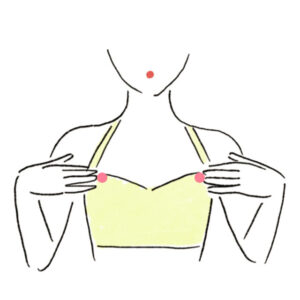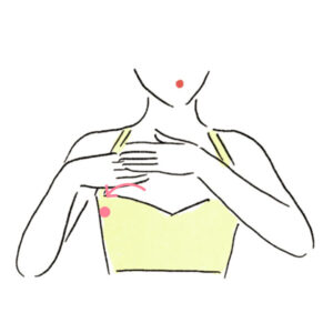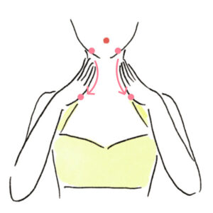 (2)両手の指でデコルテを内側から外側に向かってさすり、わきの下まで流す。左右交互に10回行う。